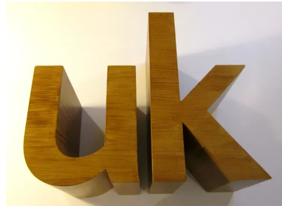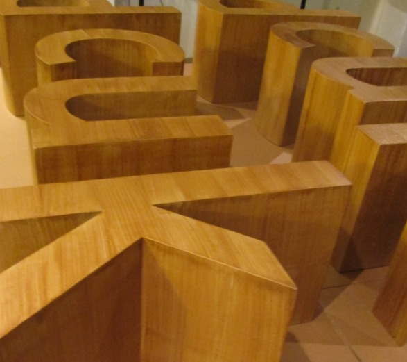 Faux medium oak finish. Made from painted xpsfoam. Example shows letters made from 370mm high, and 200mm thick xps foam. Letters can be coated in a medium oak quick-drying wood stain.
